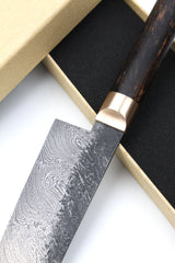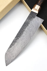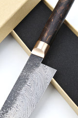 Klinge: Handgeschmiedeter Damast, 63 HRC, 180 mm
