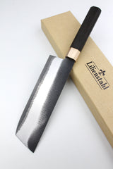 Das Nakiri ist der Blattschneider, also ein feines Gemüsebeil, das auf präzises Hacken von Gemüse spezialisiert wurde. Das hohe Klingenblatt bietet eine perfekte Führung des Schnitts und gewährleistet ein einfaches Aufschaufeln des Schnittguts.