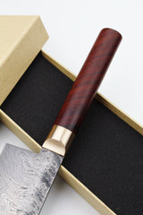 Klinge: Handgeschmiedeter Damast, 63 HRC, 180 mm