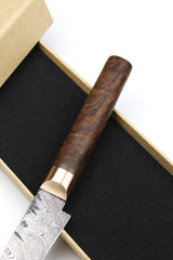 Das Petty ist eine fantastische Ergänzung für Ihre Küche. Es besitzt eine 120 mm lange Klinge mit einer Breite von 25 mm. Ein kleines Messer mit unglaublicher Schärfe und atemberaubender Schönheit. Es ist mit größter Sorgfalt verarbeitet und ergonomisch gestaltet, um auch bei längerer Nutzung höchsten Komfort zu gewährleisten.