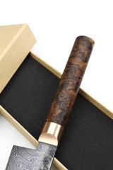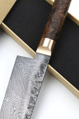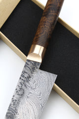 Klinge: Handgeschmiedeter Damast, 63 HRC, 180 mm