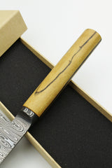 Das Lilienstahl Santoku Le Tigre hat seinen Namen von dem 40 Jahre getrockneten B&W Ebenholz aus einem alten österreichischen Furnierwerk.